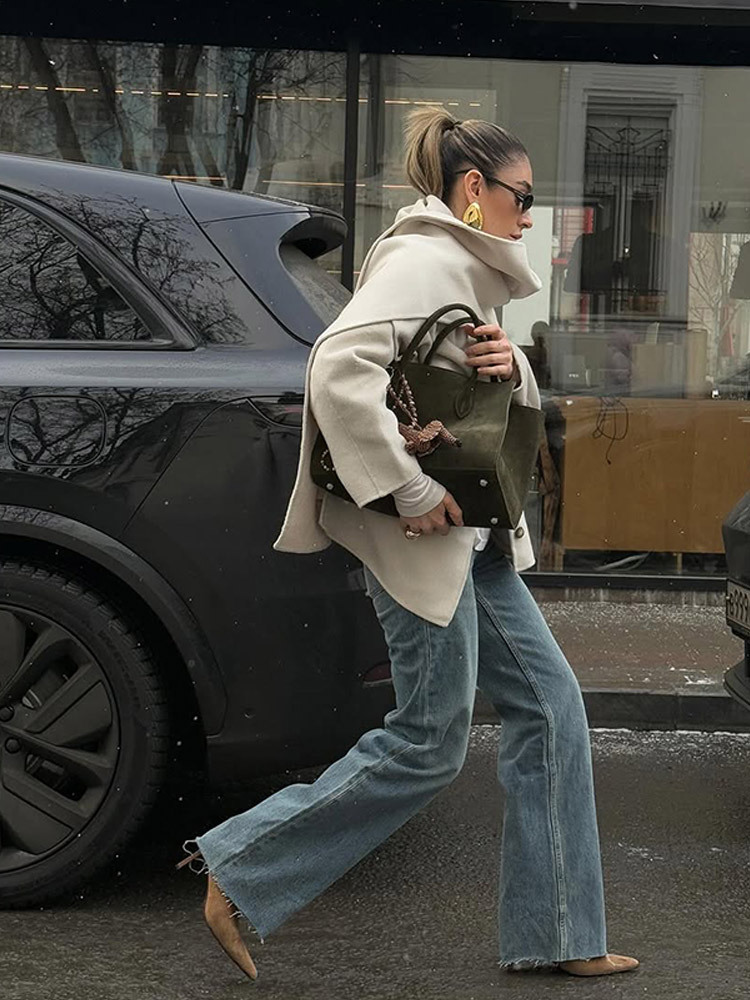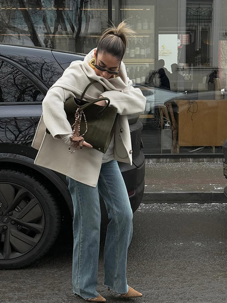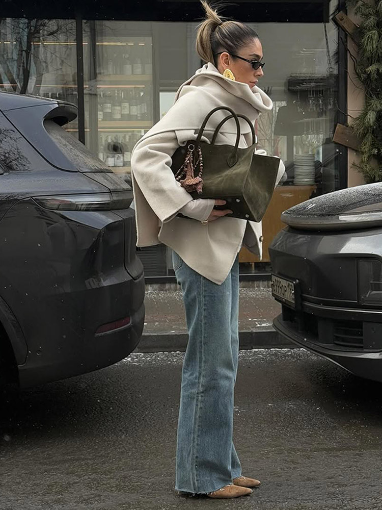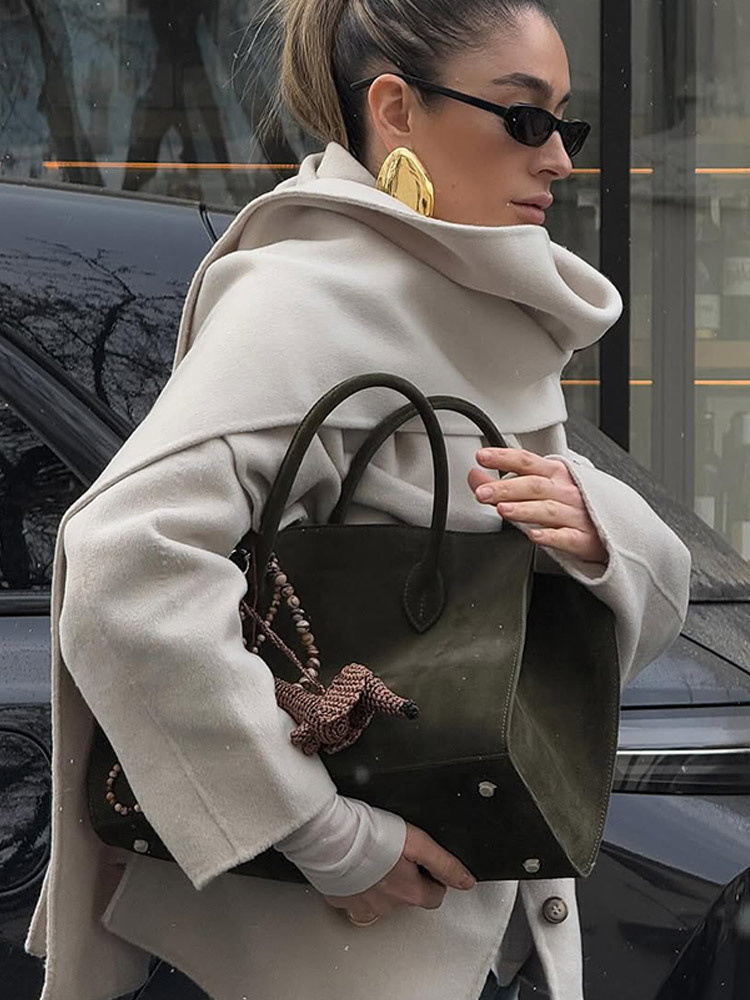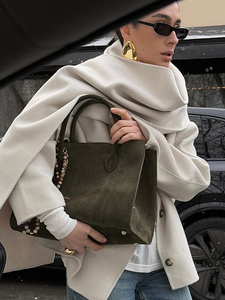 Solid Color Scarf Collar Single-breasted Woolen Coat For Women